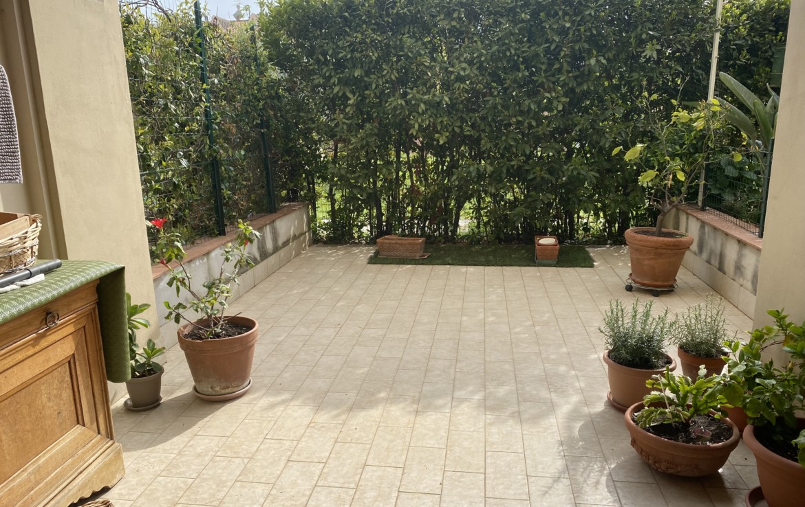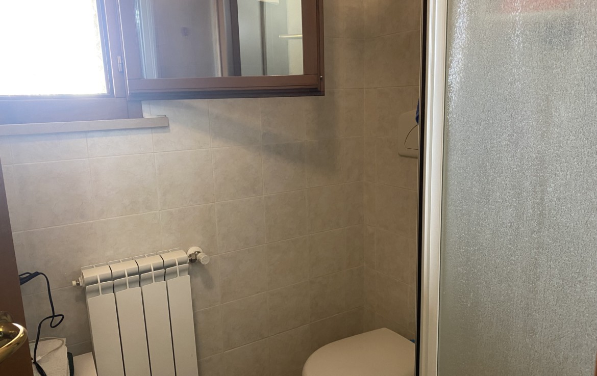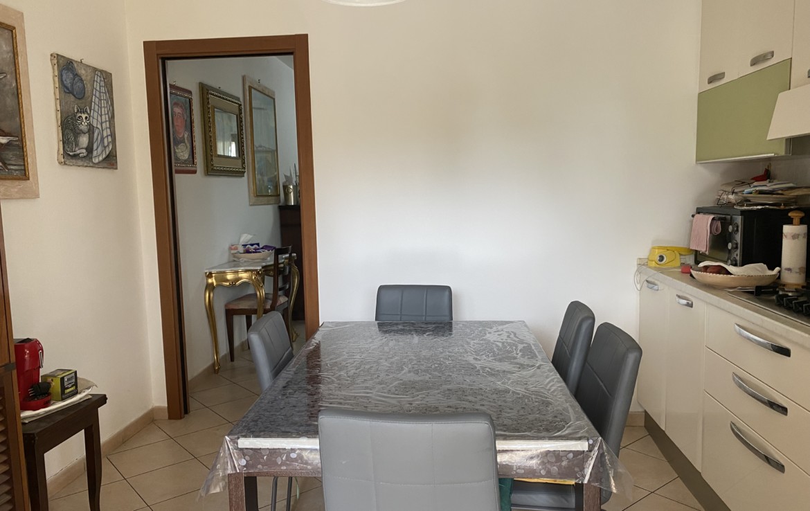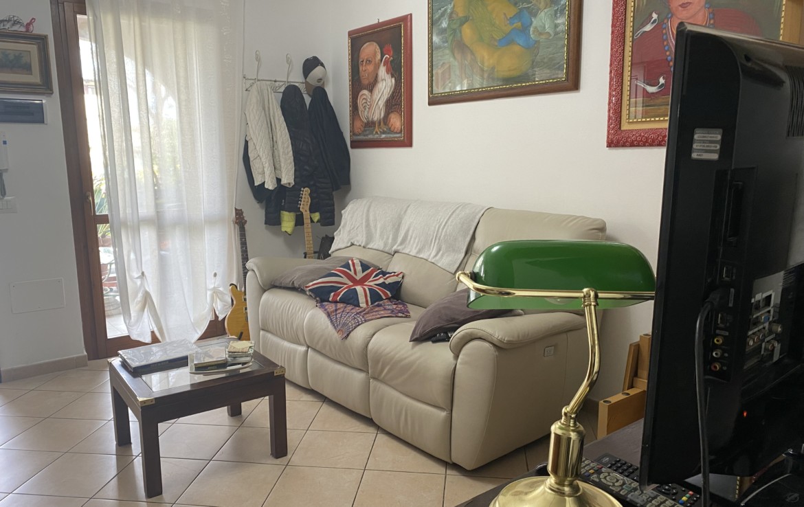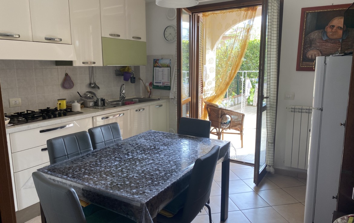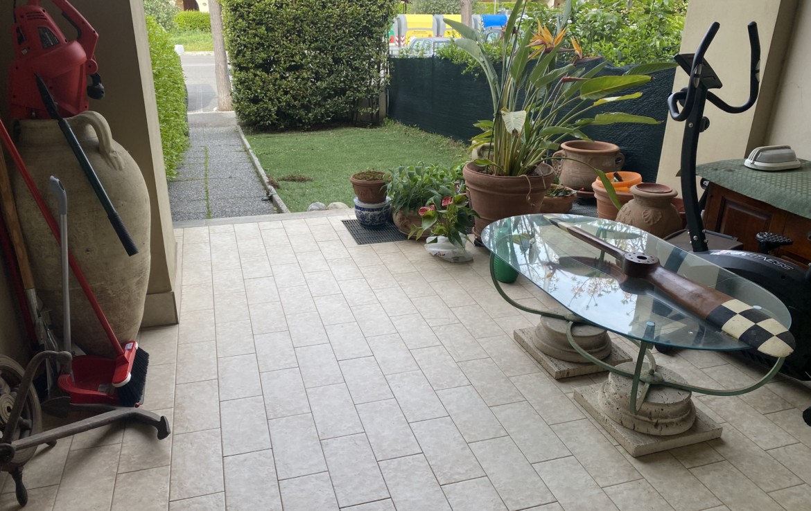 L’appartamento di circa 65 mq al piano rialzato ha il soggiorno con veranda che quarda il giardino, la cucina abitabile con una ulteriore veranda grande, il bagno con doccia;