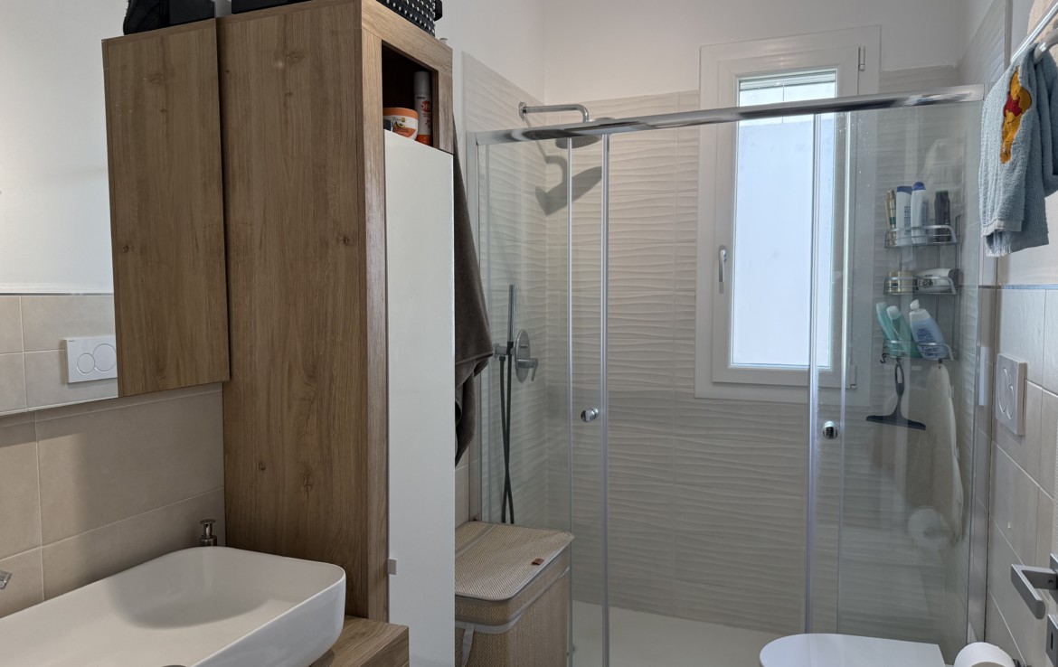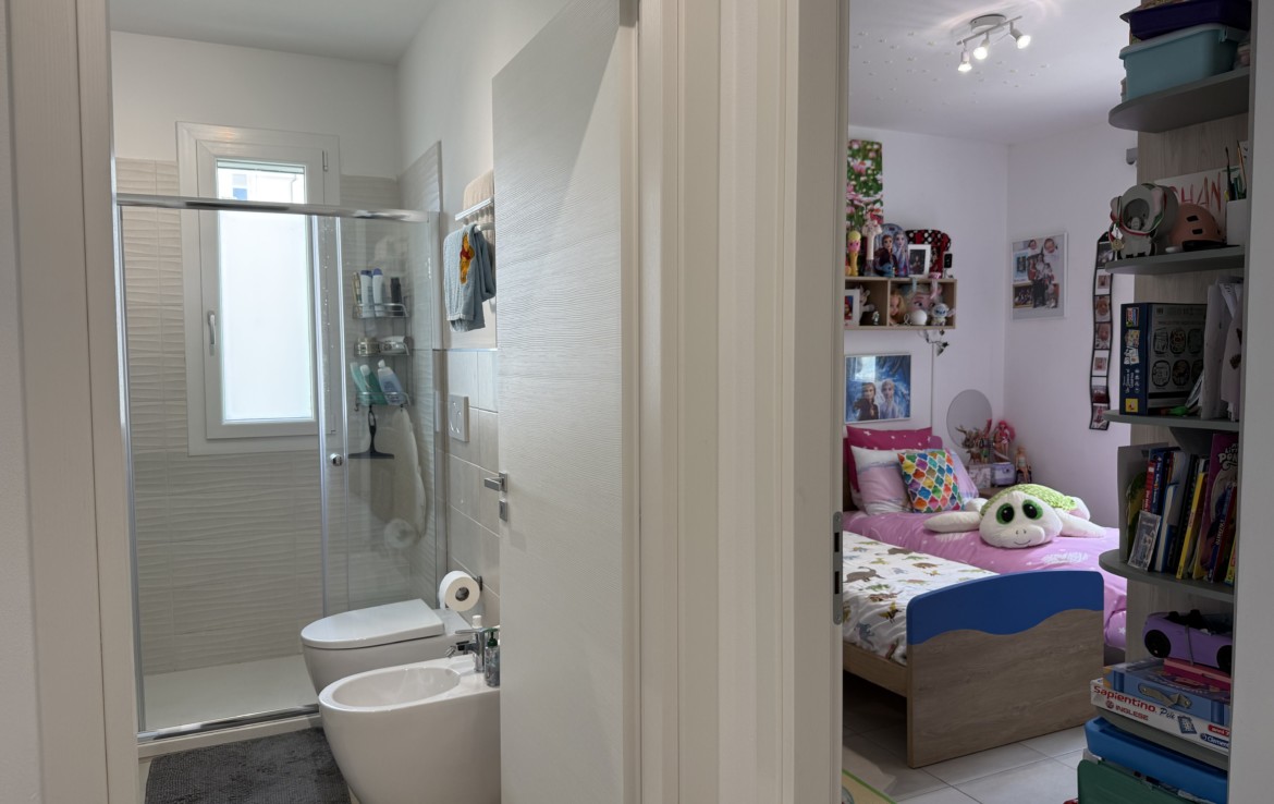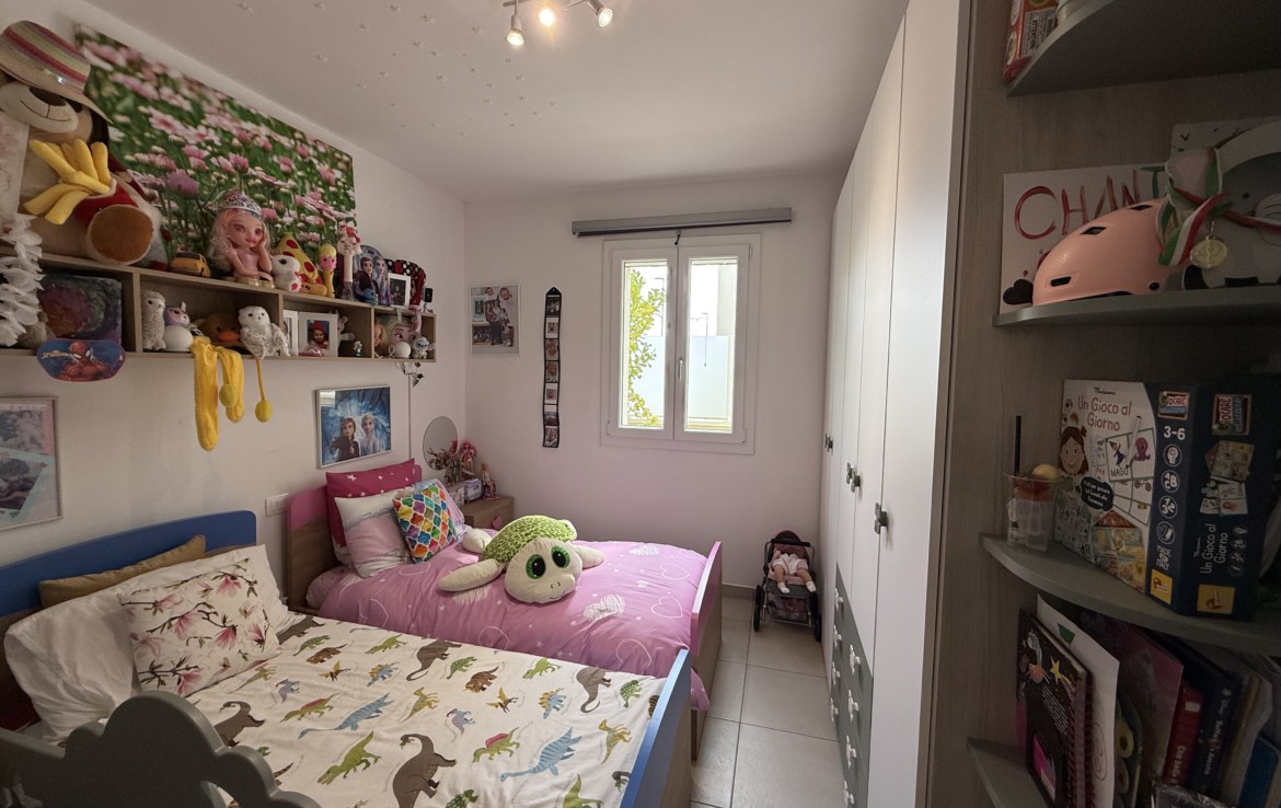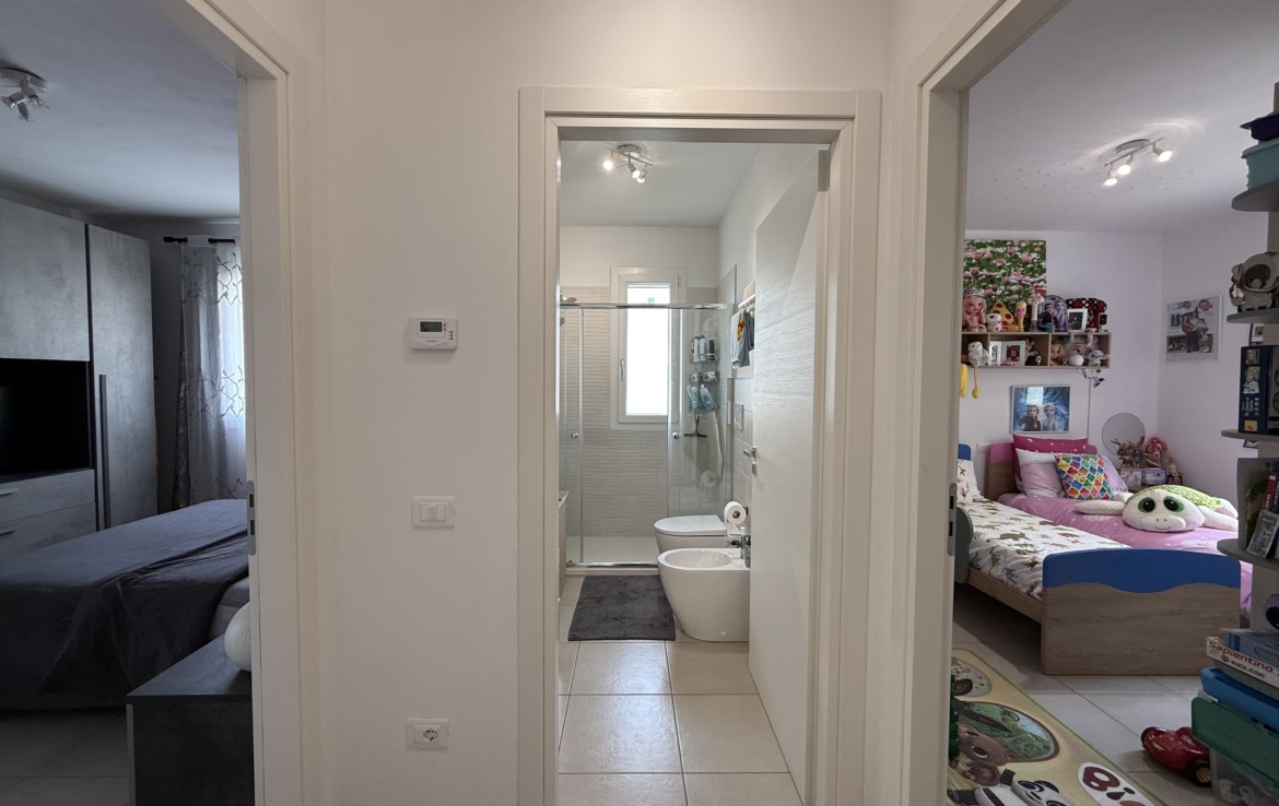 La proprietà di circa 85 mq è un quattro vani con l’ingresso nel soggiorno pranzo, la cucina abitabile a vista, il disimpegno che conduce alle due camere da letto e al bagno comodo con doccia e finestra.