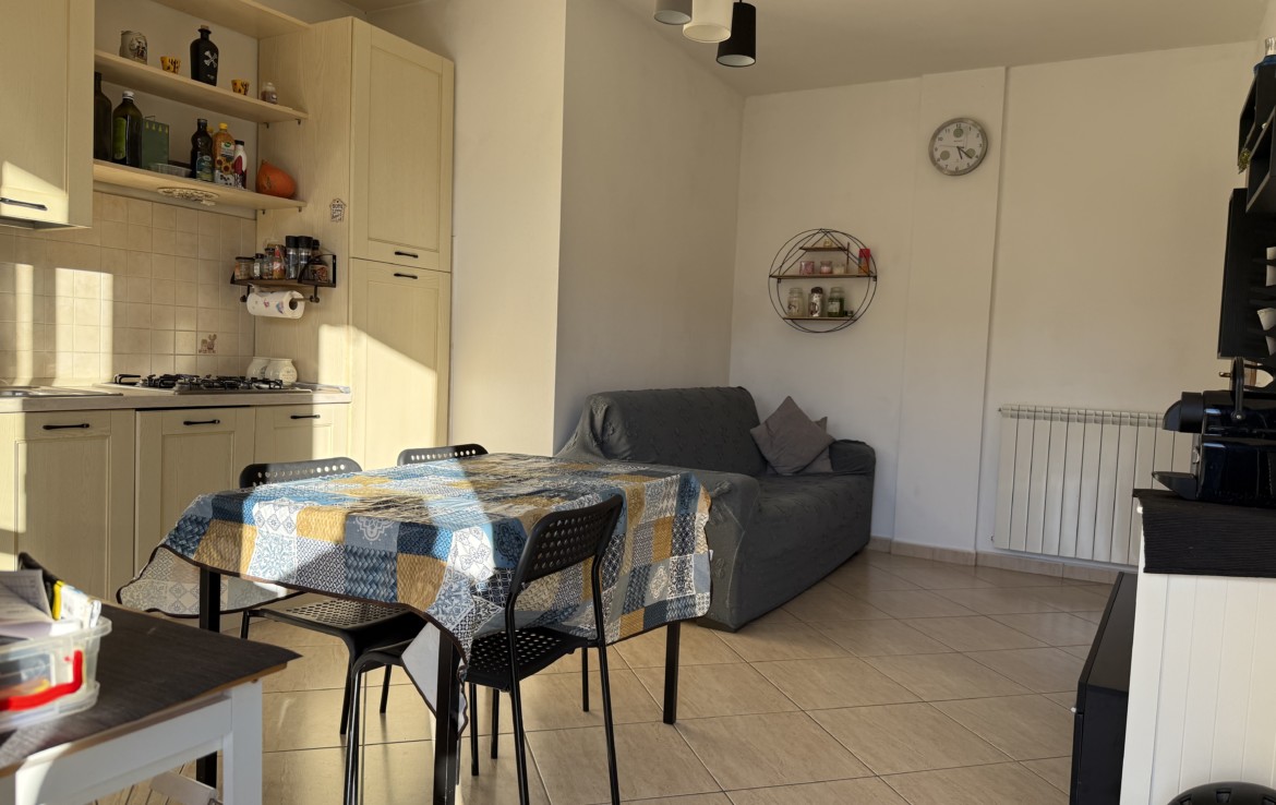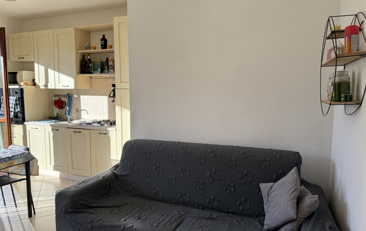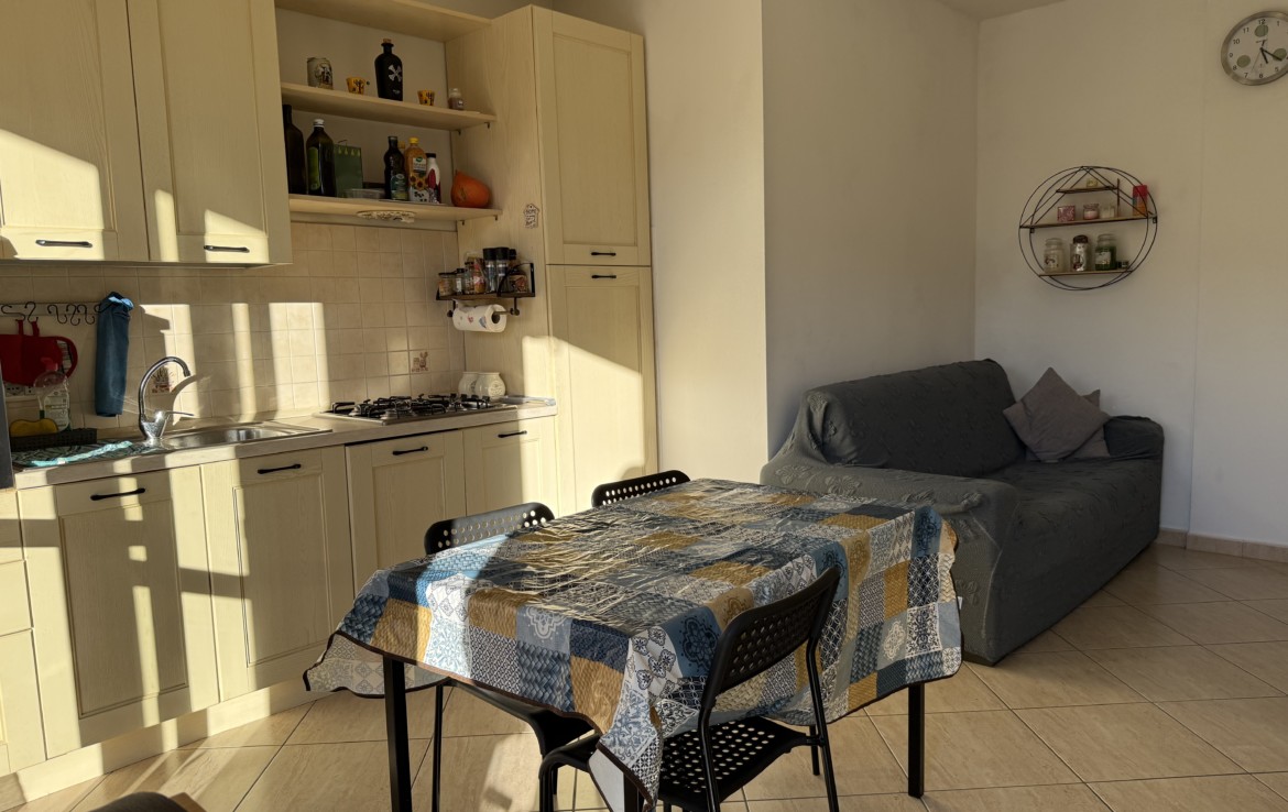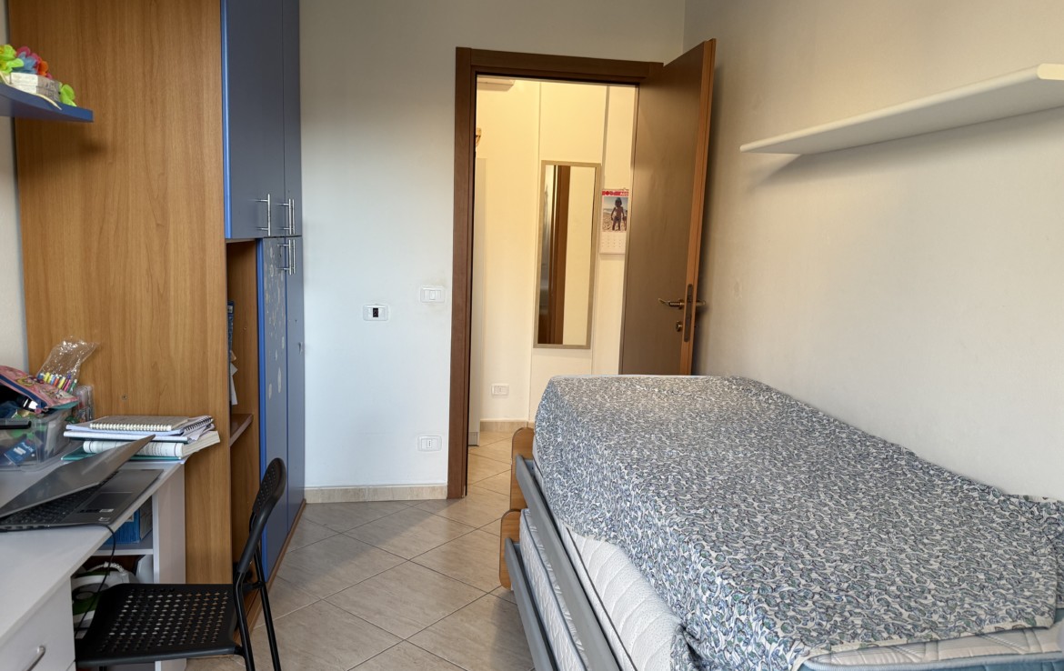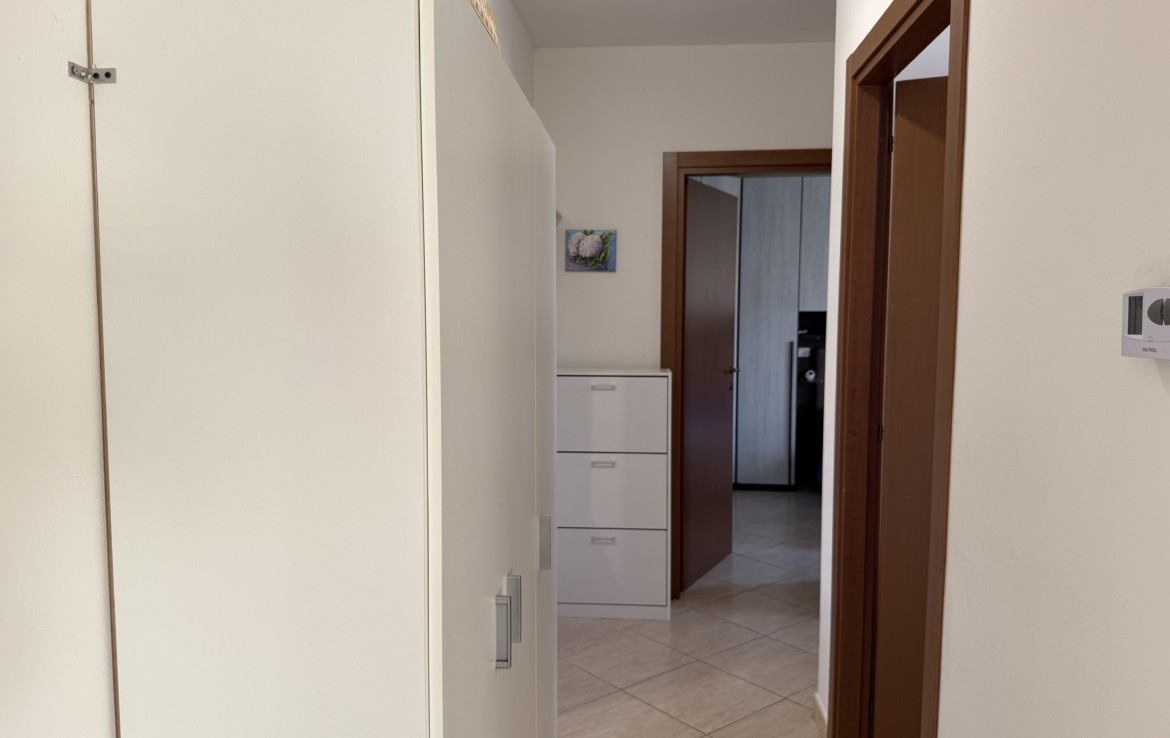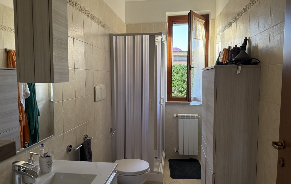 L’appartamento è un tre vani con il soggiorno pranzo e zona cottura, due camere da letto, il bagno con la finestra e la doccia.