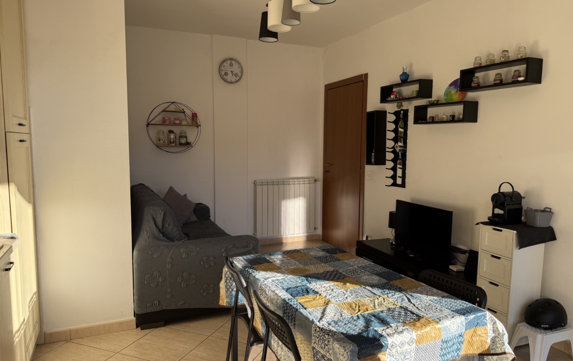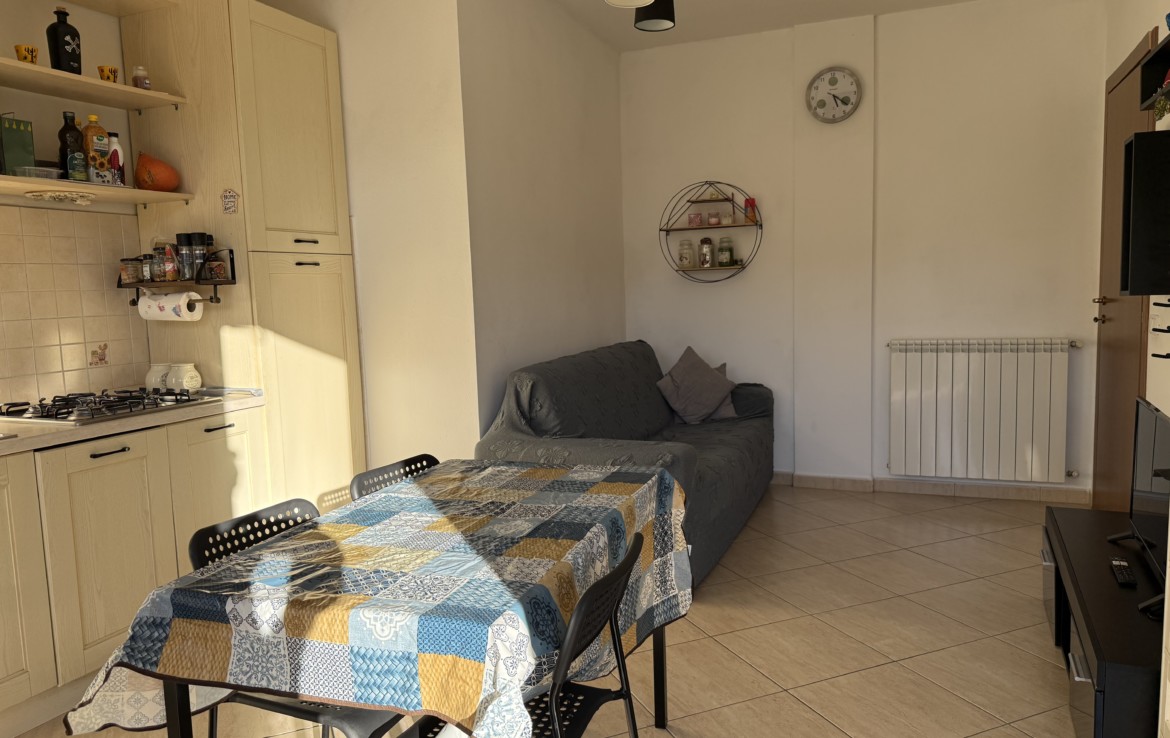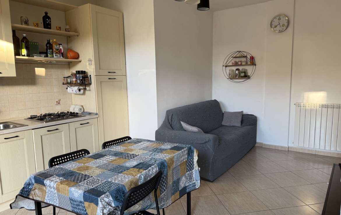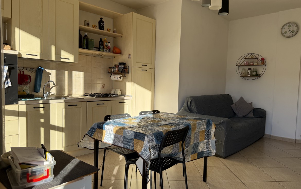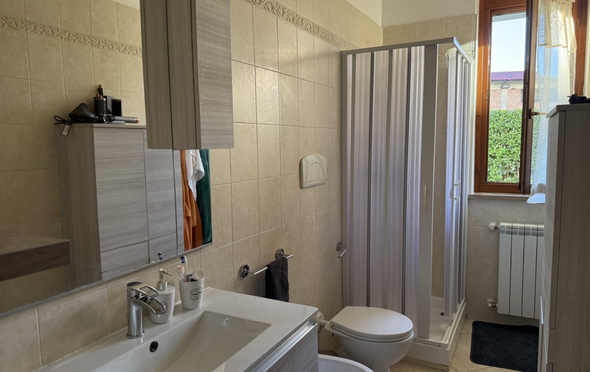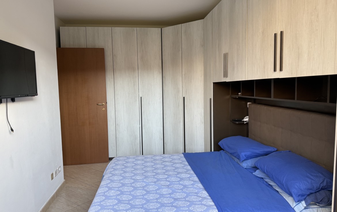 L’appartamento è un tre vani con il soggiorno pranzo e zona cottura, due camere da letto, il bagno con la finestra e la doccia.
