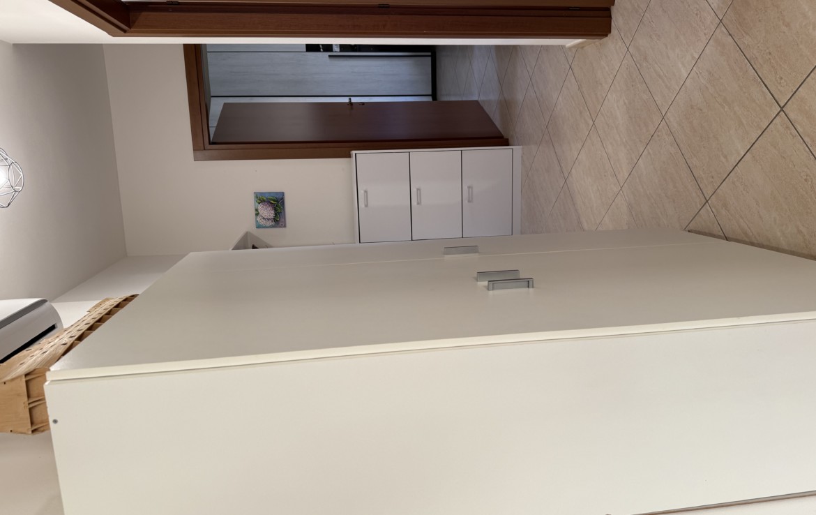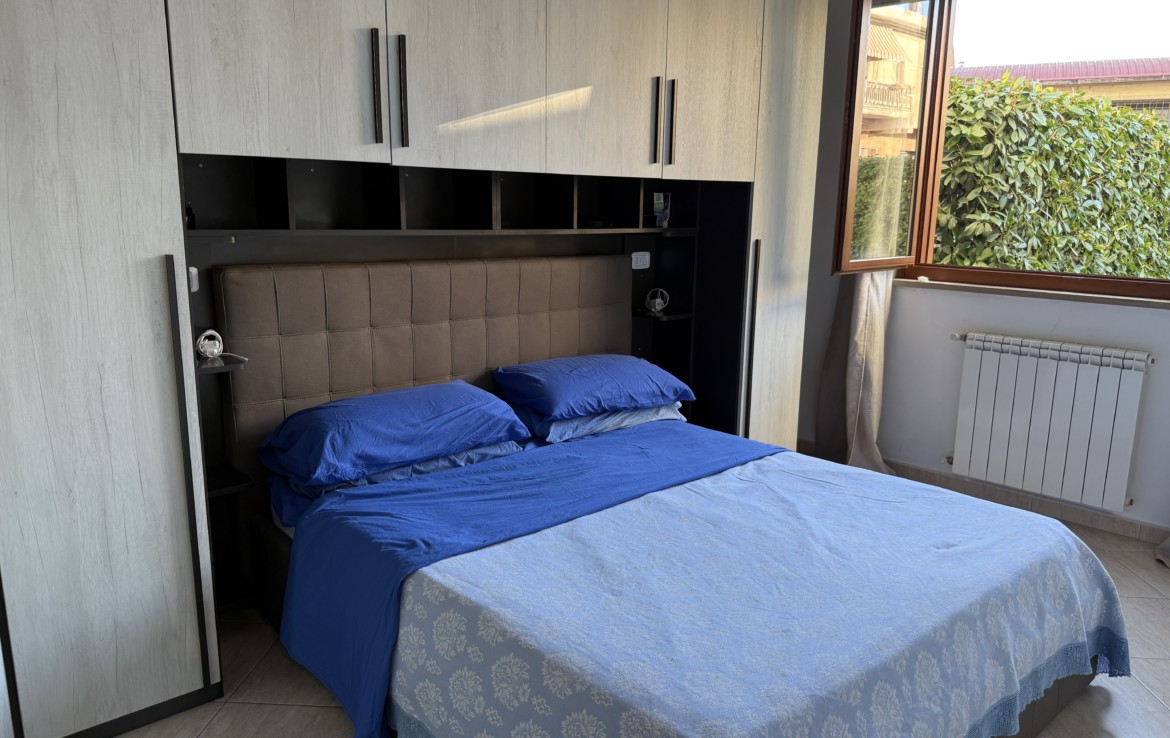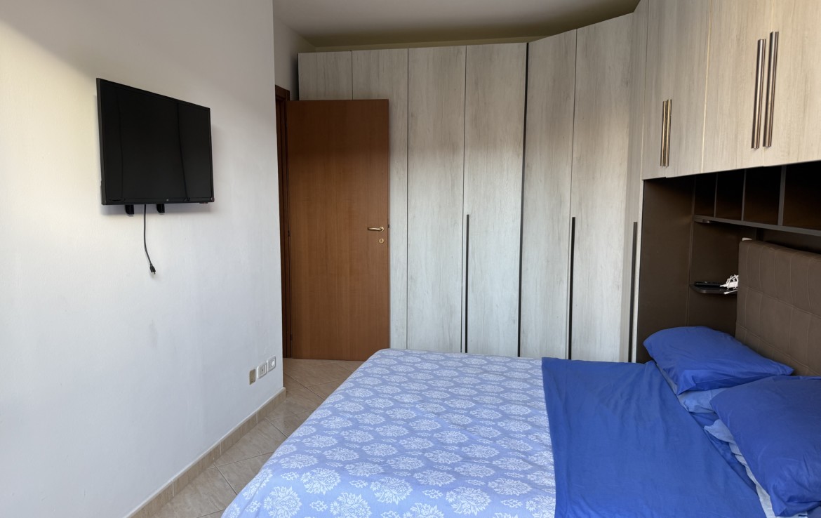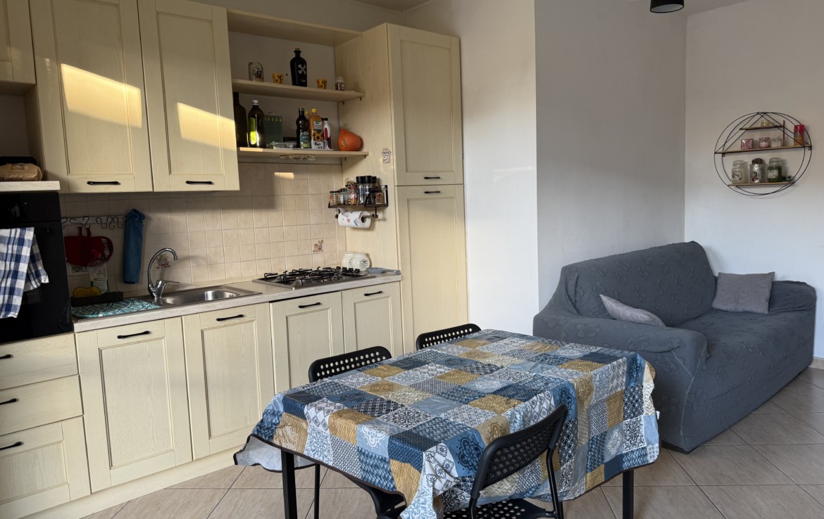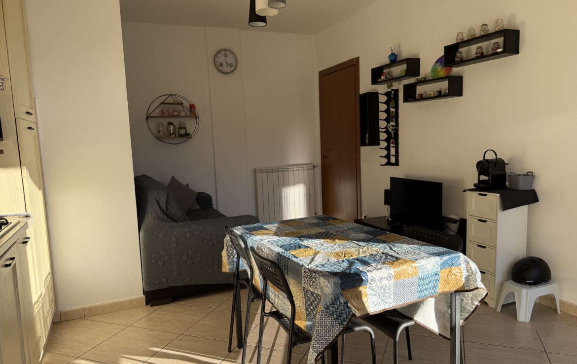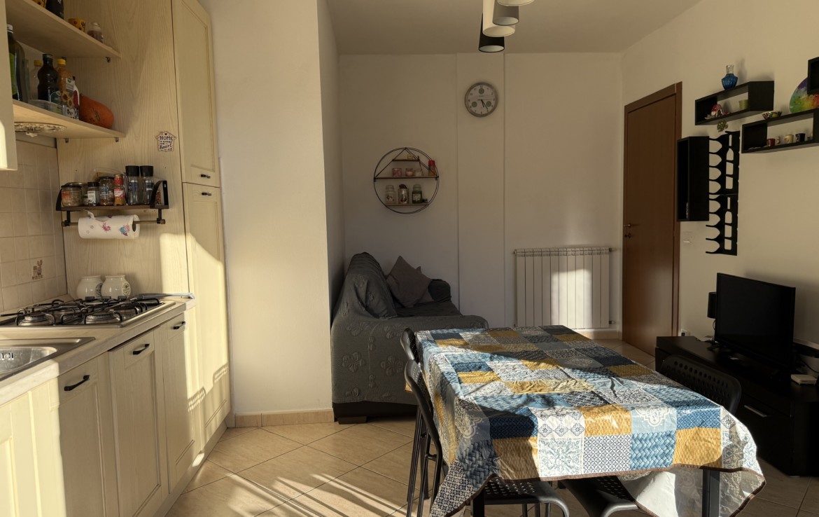 L’appartamento è un tre vani con il soggiorno pranzo e zona cottura, due camere da letto, il bagno con la finestra e la doccia.